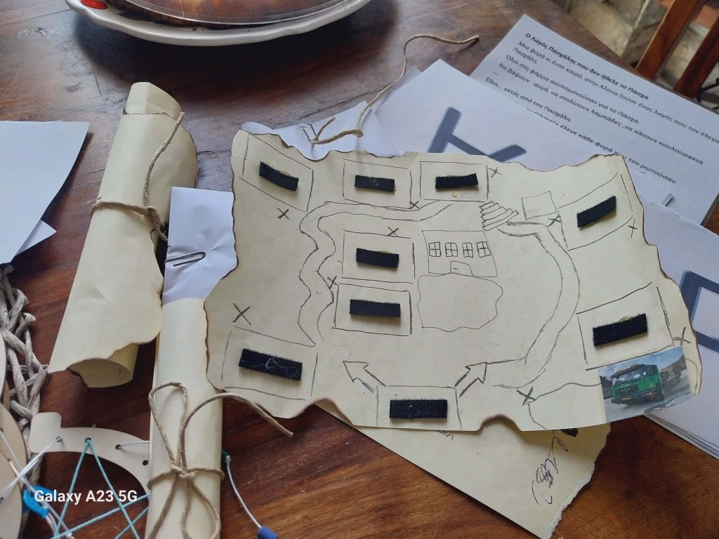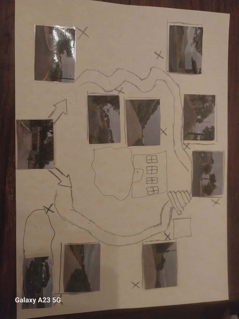 Η κοτούλα η Μαριγώ έφτιαξε ένα χάρτη για να μας βοηθήσει να βρούμε τους σταθμούς στο λόφο της Φανερωμένης αλλά δεν τον ολοκλήρωσε….